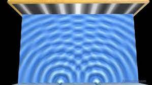 1) Deux fentes. || || On y fait passer des "ondes". En passant dans les trous ça les perturbe et ça fait des sortes de traits.